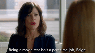 I really enjoy seeing all the behind the scenes stuff with the whole film process. It’s fun to see Paige audition and deal with suddenly being famous. She has this new job and lifestyle she needs to adjust to. It’s still a novelty for her to wear gorgeous gowns and meet celebrities.