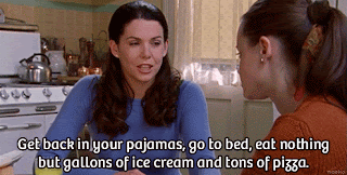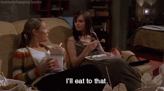 Some of our best moments together were piling on the couch, literally on top of each other, and giggling through Lorelai’s witticisms and Rory’s adorableness. This was usually a post cookie baking event. I know, aren’t we just too cute?
