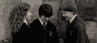 I love how the movies made a point to give their troublemaking trio some beautiful friendship moments. Little jokes, uncontrollable laughter, spontaneous hugs…spontaneous handshakes were also good. They take care of each other. They don’t always get along, and Hermione took a couple months to even befriend Harry and Ron, but they stick together and take care of each other.